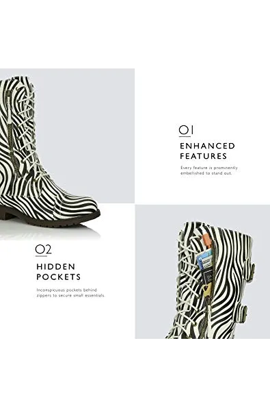 - RUGGEDLY CRAFTED --With the DailyShoes Women's Military Combat Boots with Pocket, you can easily walk on all types of terrains. The slip-resistant rubber sole has a special traction grip that will keep you on your feet on slippery floors, icy sidewalks and loose gravel. The boots are constructed out of heavy-duty vegan leather that resists wear and tear, making these boots perfect for work or play.