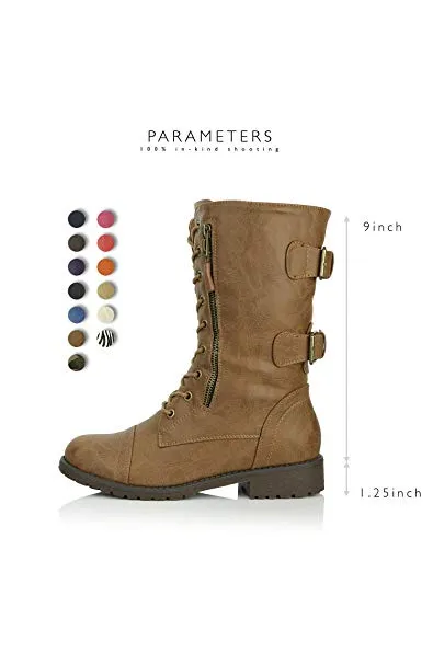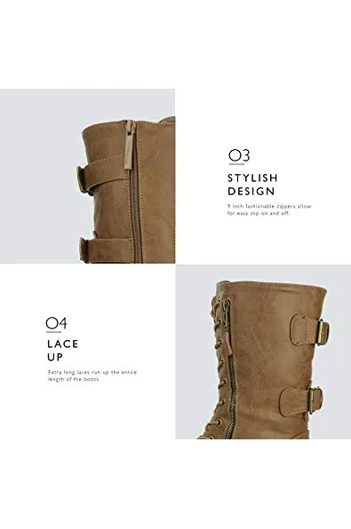 DailyShoes Women's Ankle Bootie High Lace up Military Combat Mid Calf Credit Card Knife Money Wallet Pocket Boots