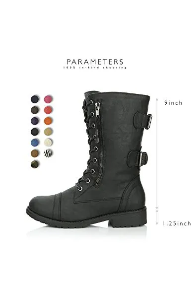 DailyShoes Women's Ankle Bootie High Lace up Military Combat Mid Calf Credit Card Knife Money Wallet Pocket Boots