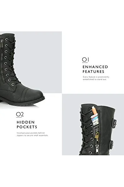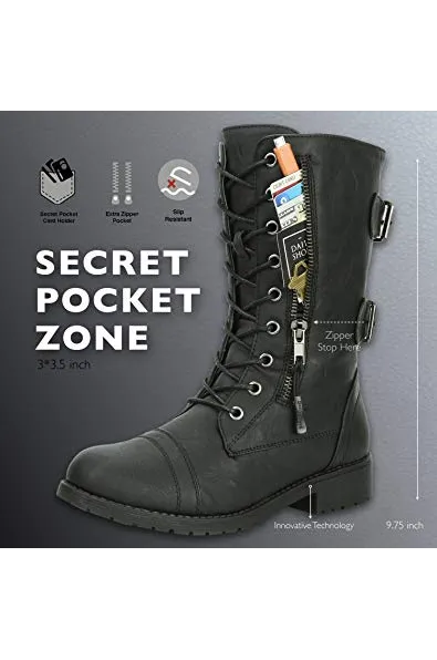 DailyShoes Women's Ankle Bootie High Lace up Military Combat Mid Calf Credit Card Knife Money Wallet Pocket Boots