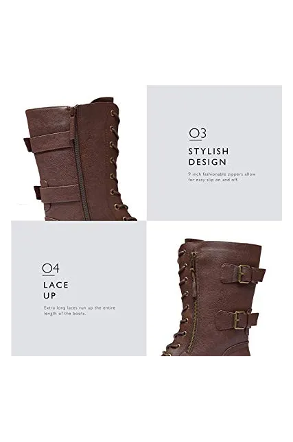 DailyShoes Women's Ankle Bootie High Lace up Military Combat Mid Calf Credit Card Knife Money Wallet Pocket Boots