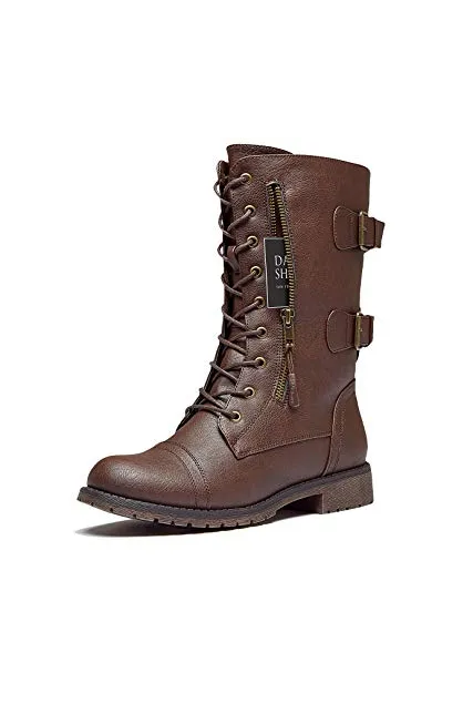 - RUGGEDLY CRAFTED --With the DailyShoes Women's Military Combat Boots with Pocket, you can easily walk on all types of terrains. The slip-resistant rubber sole has a special traction grip that will keep you on your feet on slippery floors, icy sidewalks and loose gravel. The boots are constructed out of heavy-duty vegan leather that resists wear and tear, making these boots perfect for work or play.