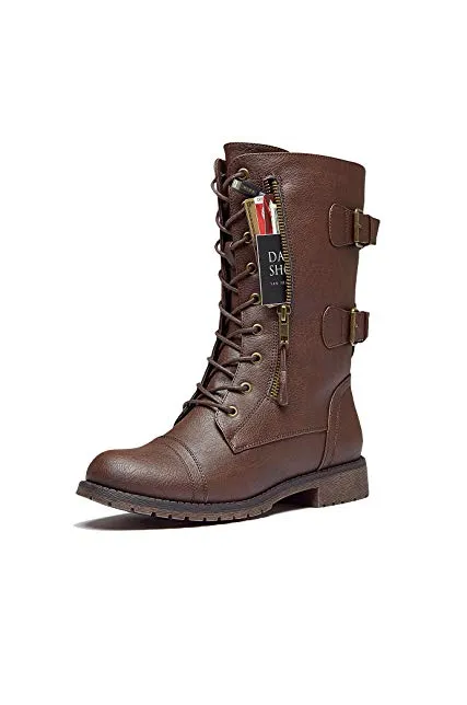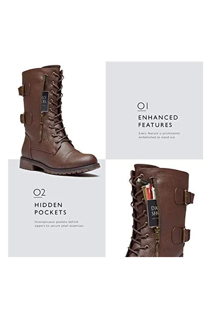 DailyShoes Women's Ankle Bootie High Lace up Military Combat Mid Calf Credit Card Knife Money Wallet Pocket Boots
