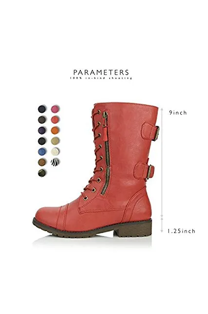 DailyShoes Women's Ankle Bootie High Lace up Military Combat Mid Calf Credit Card Knife Money Wallet Pocket Boots