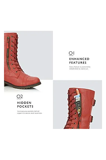 DailyShoes Women's Ankle Bootie High Lace up Military Combat Mid Calf Credit Card Knife Money Wallet Pocket Boots