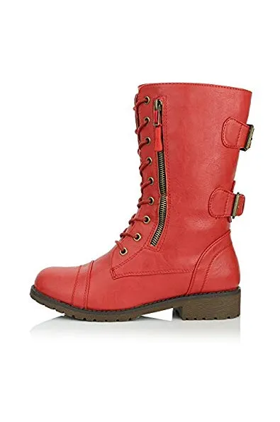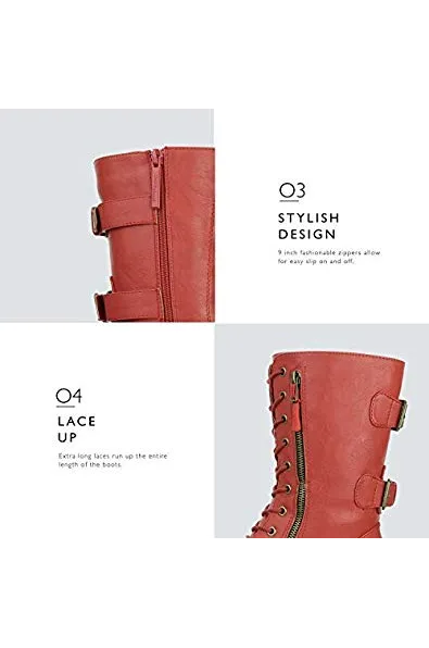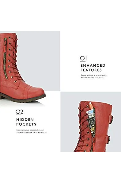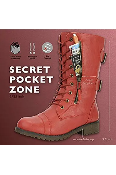DailyShoes Women's Ankle Bootie High Lace up Military Combat Mid Calf Credit Card Knife Money Wallet Pocket Boots