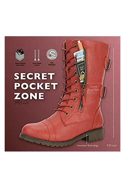 DailyShoes Women's Ankle Bootie High Lace up Military Combat Mid Calf Credit Card Knife Money Wallet Pocket Boots