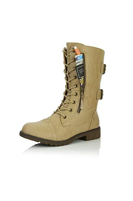 DailyShoes Women's Ankle Bootie High Lace up Military Combat Mid Calf Credit Card Knife Money Wallet Pocket Boots