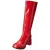 - Novelty go-go boot in glossy finish featuring chunky molded heel and split-toe stitching