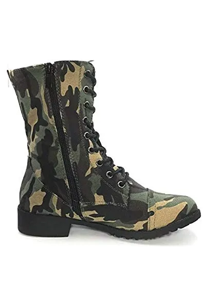 Forever Link Womens Round Toe Military Lace up Knit Ankle Cuff Low Heel Combat Boots