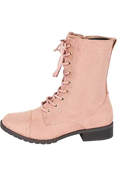 Forever Link Womens Round Toe Military Lace up Knit Ankle Cuff Low Heel Combat Boots