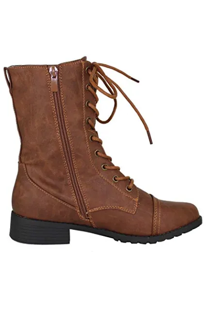 - CLASSIC COMBAT BOOTS: You can't go wrong with effortless zip up combat boots! Simple combat lace up boots are an everyday essential to complete your look. This revolutionary trend has become a modern wardrobe staple from the shopping to the streets. Made from vegan faux leather and a manmade outsole, you can strut in style with these eco-friendly walking shoes.