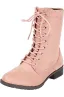 Forever Link Womens Round Toe Military Lace up Knit Ankle Cuff Low Heel Combat Boots
