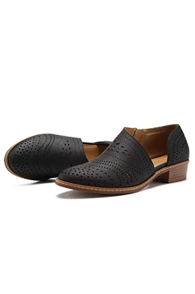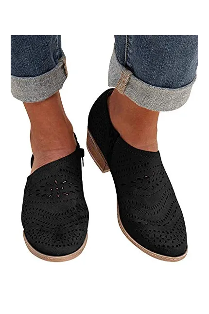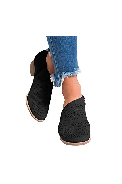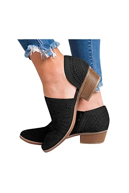 - 【STYLISH FEATURE】 - Side cut out and zipper, breathable ankle boots, pointed toe, stacked heel platform, slip on loafers