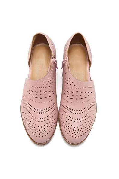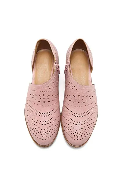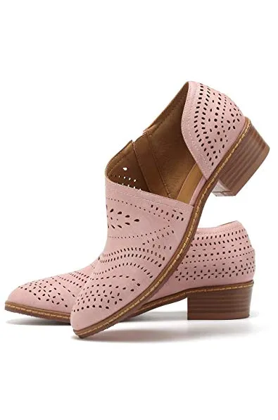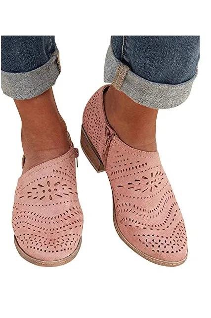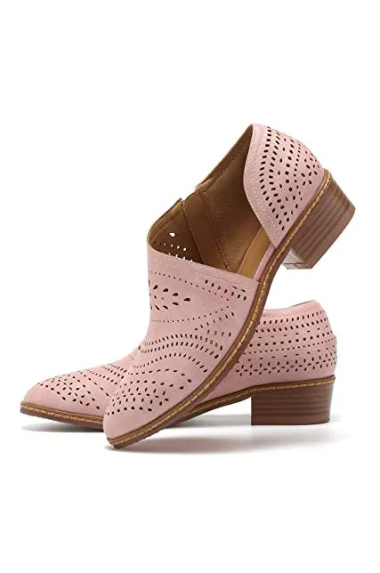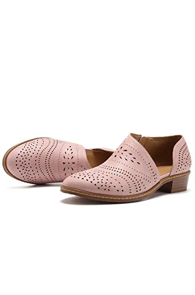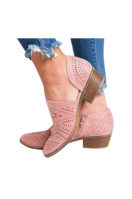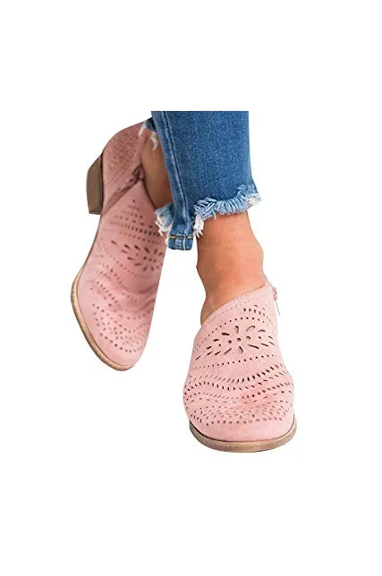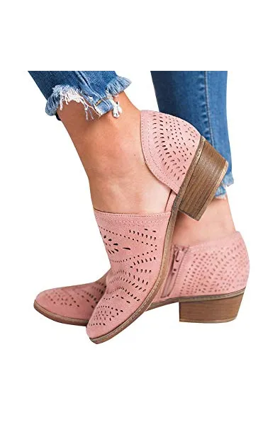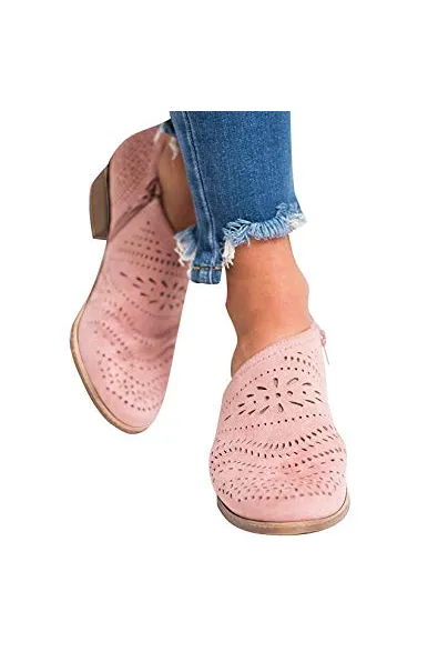 GOUPSKY Women's Ankle Boots Slip On Loafers Pointed Toe Chunky Block Low Heel Office Dress Casual Shoes Cutout Booties