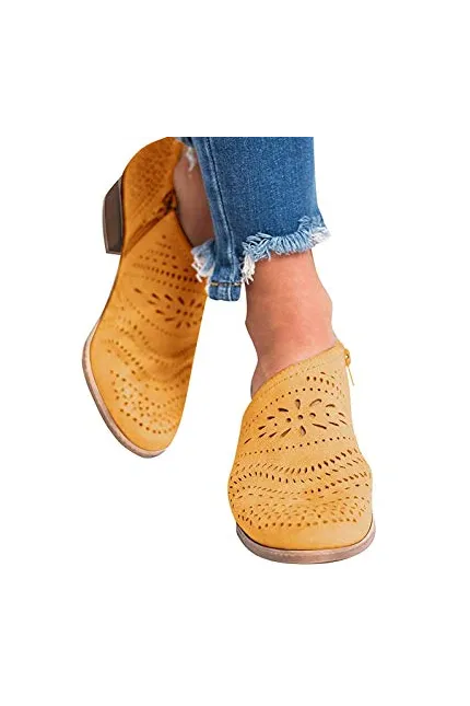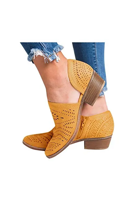 - 【STYLISH FEATURE】 - Side cut out and zipper, breathable ankle boots, pointed toe, stacked heel platform, slip on loafers