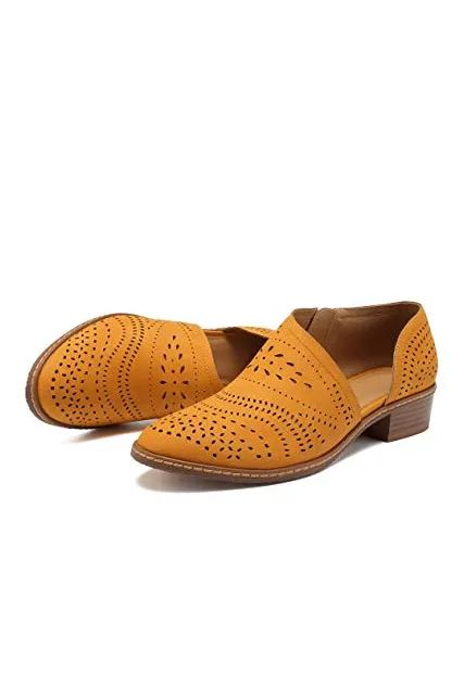 GOUPSKY Women's Ankle Boots Slip On Loafers Pointed Toe Chunky Block Low Heel Office Dress Casual Shoes Cutout Booties