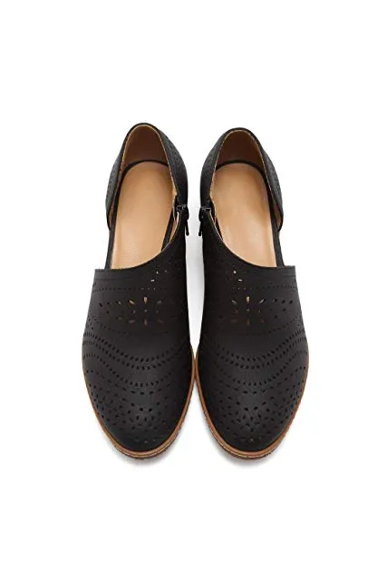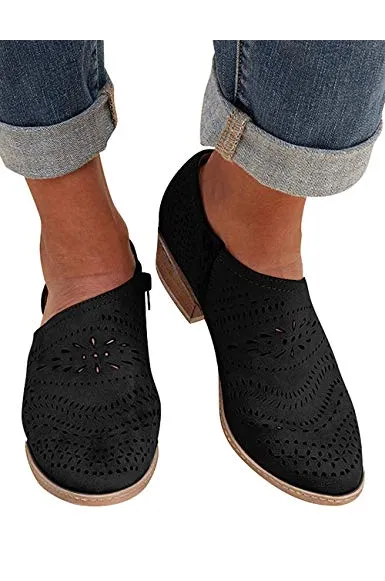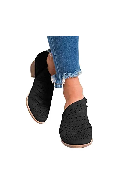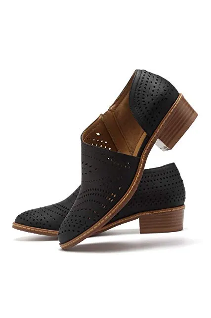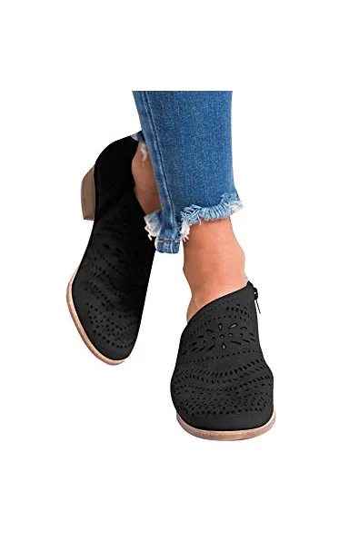GOUPSKY Women's Ankle Boots Slip On Loafers Pointed Toe Chunky Block Low Heel Office Dress Casual Shoes Cutout Booties
