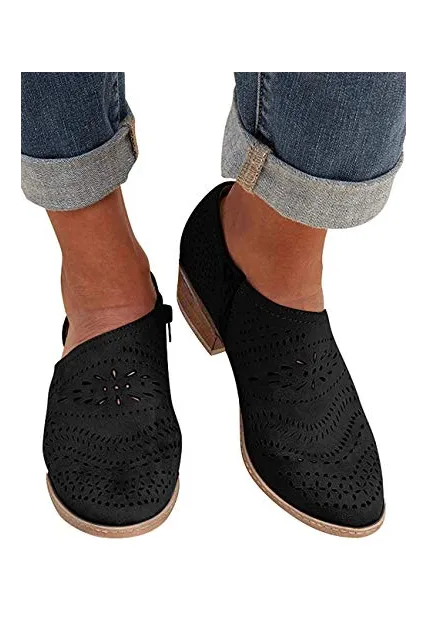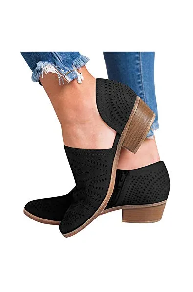 GOUPSKY Women's Ankle Boots Slip On Loafers Pointed Toe Chunky Block Low Heel Office Dress Casual Shoes Cutout Booties