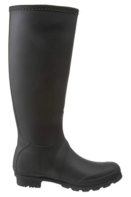 - Waterproof mid-calf rain boot with wingtip foot and logoed shield at shaft