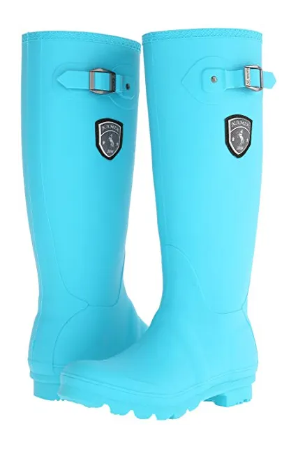 - Waterproof mid-calf rain boot with wingtip foot and logoed shield at shaft
