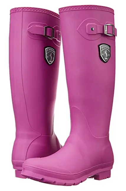 - Waterproof mid-calf rain boot with wingtip foot and logoed shield at shaft