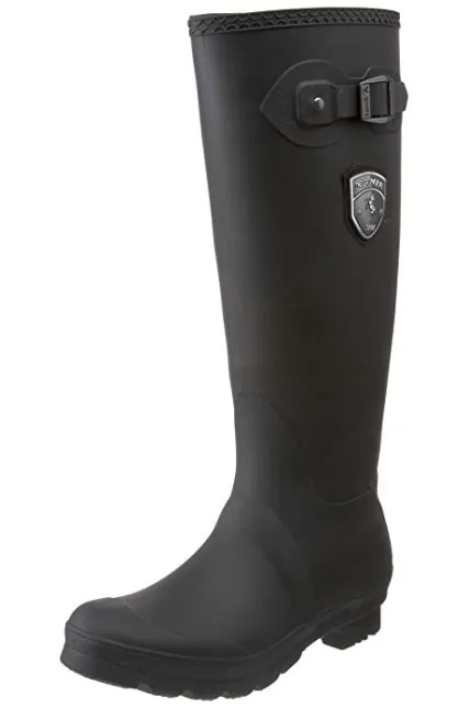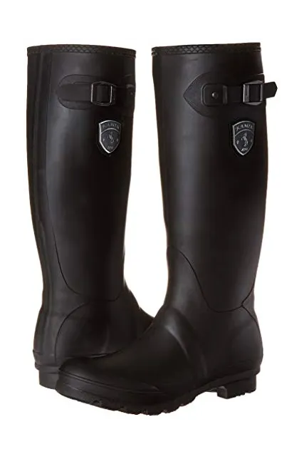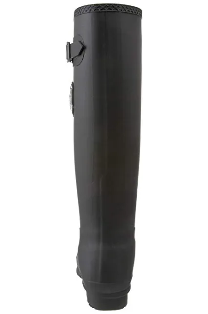 - Waterproof mid-calf rain boot with wingtip foot and logoed shield at shaft