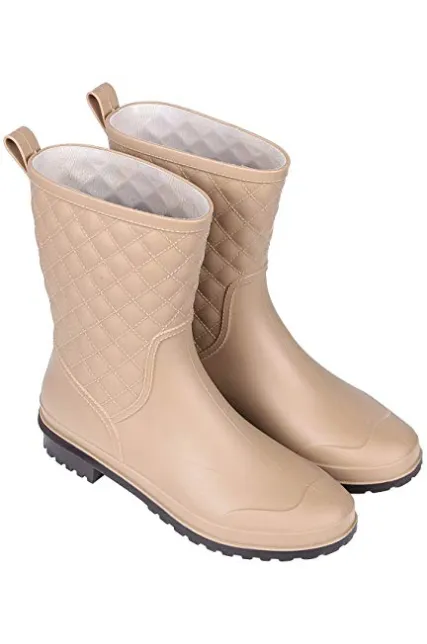 Litfun Womens Black Mid Calf Rain Boots Outdoor Work Waterproof Garden Booties Wide Calf Rain Shoes