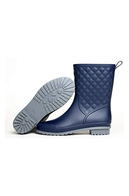 Litfun Womens Black Mid Calf Rain Boots Outdoor Work Waterproof Garden Booties Wide Calf Rain Shoes