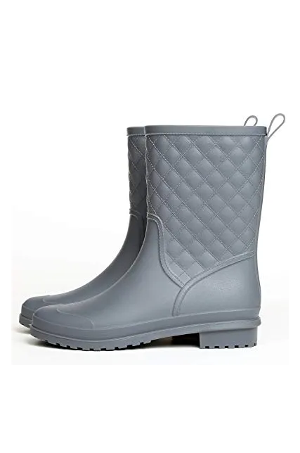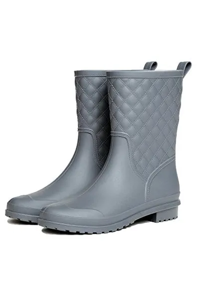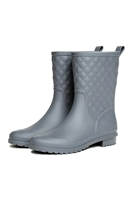 Litfun Womens Black Mid Calf Rain Boots Outdoor Work Waterproof Garden Booties Wide Calf Rain Shoes
