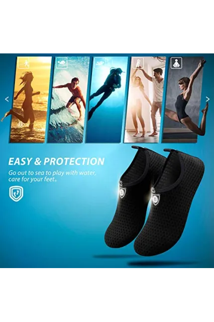 - UNIQUE DESIGN: Smooth neck designed prevents chafing when wearing our water shoes. Unique sole design, with an ergonomically molded, shock absorption performance cushioning separated to protective toe. There are a variety of colorful styles to choose from.