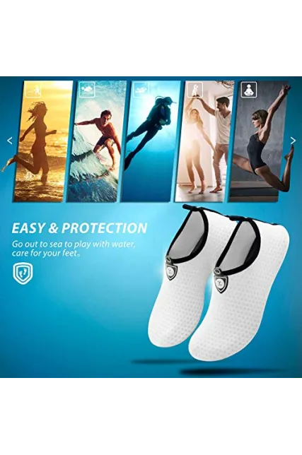 - UNIQUE DESIGN: Smooth neck designed prevents chafing when wearing our water shoes. Unique sole design, with an ergonomically molded, shock absorption performance cushioning separated to protective toe. There are a variety of colorful styles to choose from.