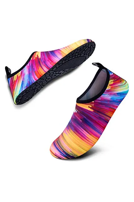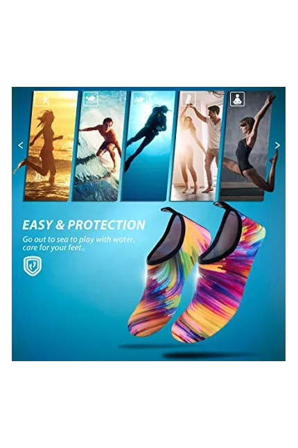 - UNIQUE DESIGN: Smooth neck designed prevents chafing when wearing our water shoes. Unique sole design, with an ergonomically molded, shock absorption performance cushioning separated to protective toe. There are a variety of colorful styles to choose from.