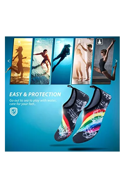 - UNIQUE DESIGN: Smooth neck designed prevents chafing when wearing our water shoes. Unique sole design, with an ergonomically molded, shock absorption performance cushioning separated to protective toe. There are a variety of colorful styles to choose from.