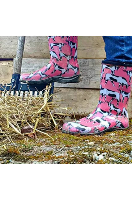 Sloggers Women's Waterproof Rain and Garden Boot with Comfort Insole, Cow-abella Bubble Gum, Size 7, Style 5017CWP07