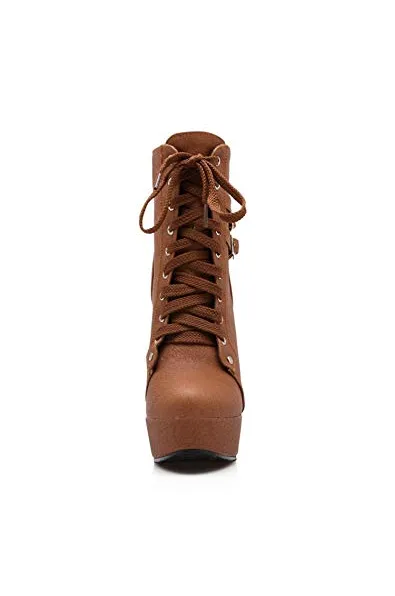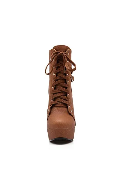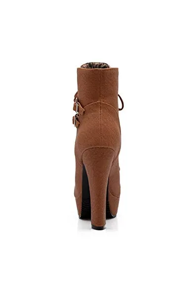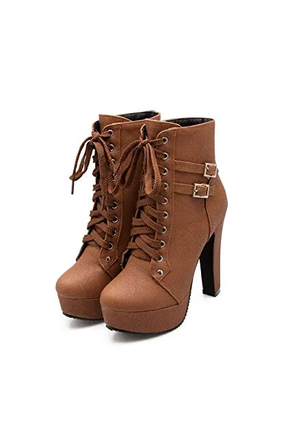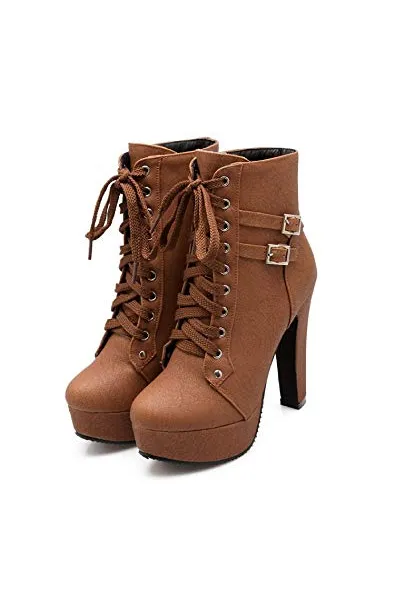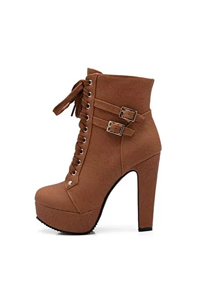 Susanny Women Autumn Round Toe Lace Up Ankle Buckle Chunky High Heel Platform Knight Martin Boots
