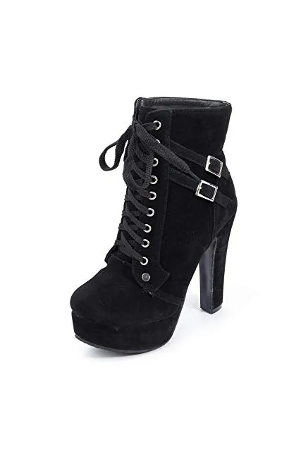 Susanny Women Autumn Round Toe Lace Up Ankle Buckle Chunky High Heel Platform Knight Martin Boots