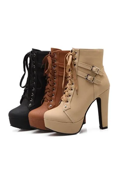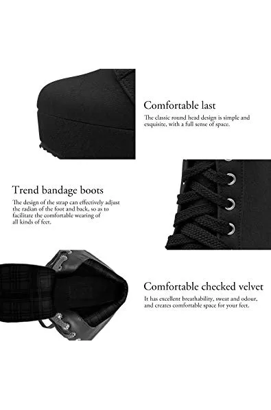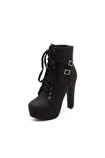 Susanny Women Autumn Round Toe Lace Up Ankle Buckle Chunky High Heel Platform Knight Martin Boots