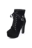 Susanny Women Autumn Round Toe Lace Up Ankle Buckle Chunky High Heel Platform Knight Martin Boots