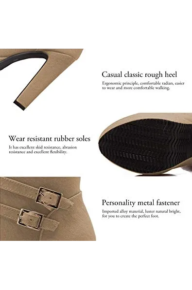- Chic Ankle-high PU leather upper with dual buckled ankle straps