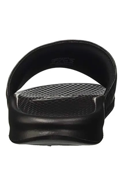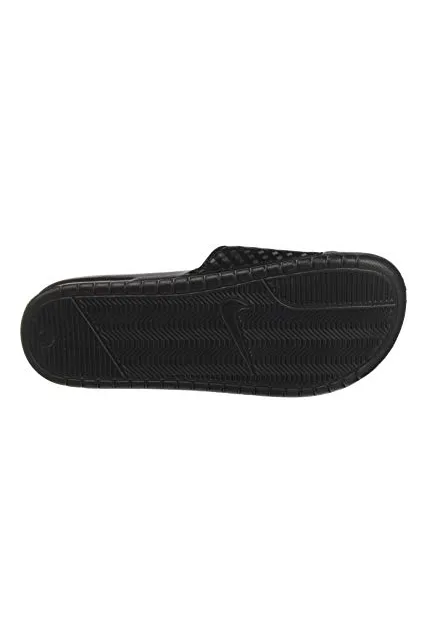 - WOMEN'S SLIDES: The Nike Benassi "Just Do It." sandal for women is designed with style and athleticism in mind. Nike corporate logo printed on top of women's slide sandal.