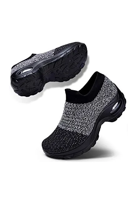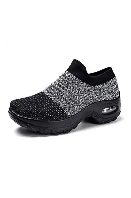 STQ Slip On Breathe Mesh Walking Shoes Women Fashion Sneakers Comfort Wedge Platform Loafers