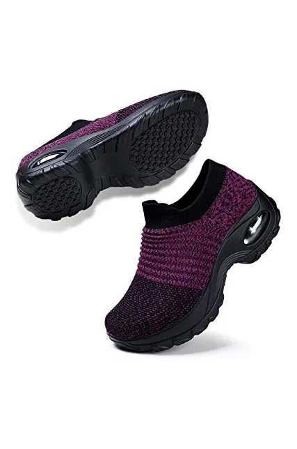 STQ Slip On Breathe Mesh Walking Shoes Women Fashion Sneakers Comfort Wedge Platform Loafers