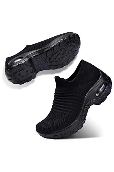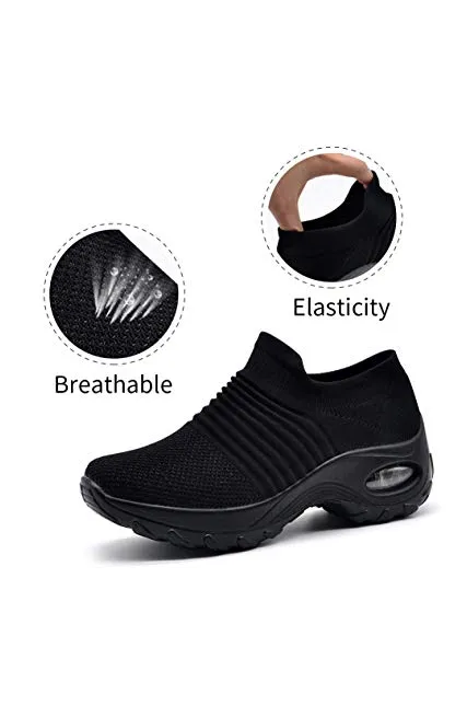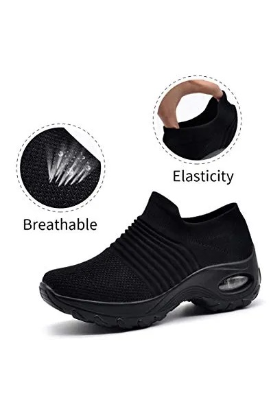STQ Slip On Breathe Mesh Walking Shoes Women Fashion Sneakers Comfort Wedge Platform Loafers