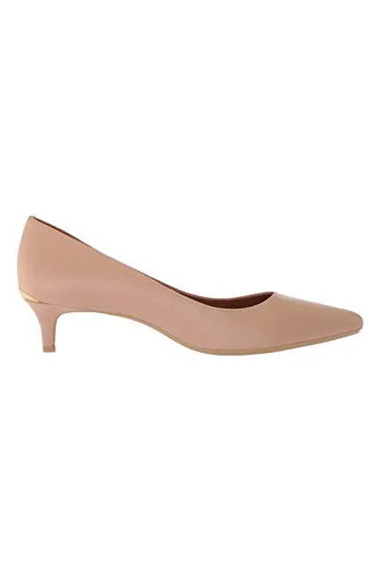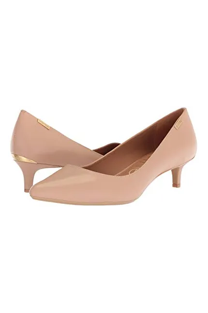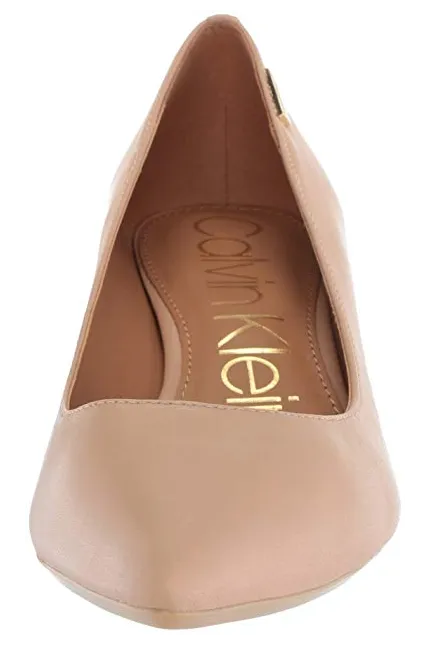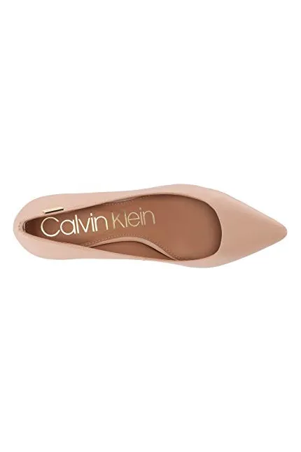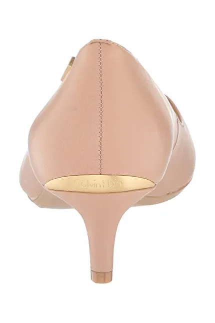 - STYLE AND DESIGN: Classic pointed toe pump with a 1.5 inch stiletto kitten heel for all day wear. Finished with a Calvin Klein logo plate at back heel.