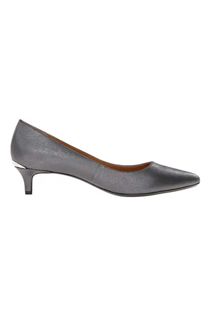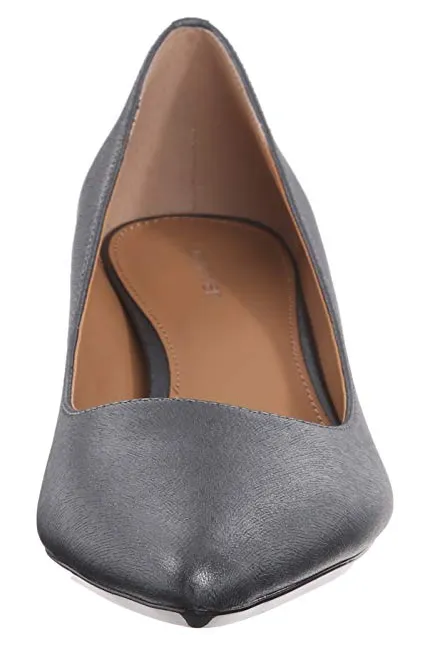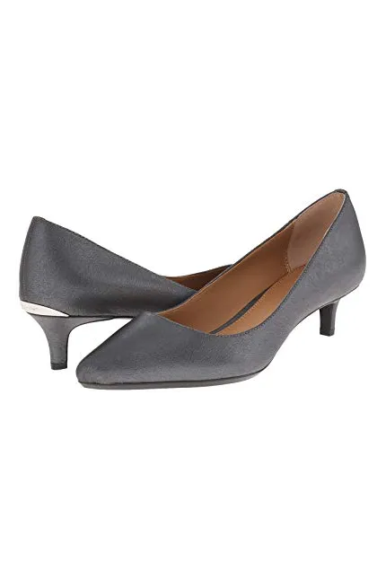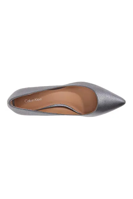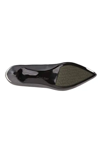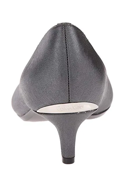- STYLE AND DESIGN: Classic pointed toe pump with a 1.5 inch stiletto kitten heel for all day wear. Finished with a Calvin Klein logo plate at back heel.
