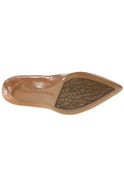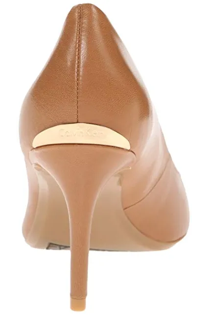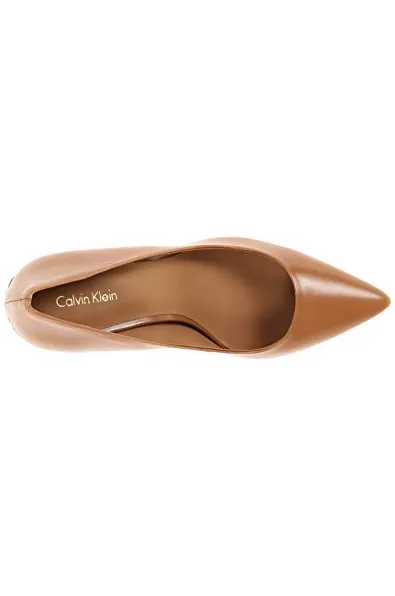 - STYLE AND DESIGN: Classic pointed toe pump with a 3 inch stiletto heel. Finished with a Calvin Klein logo plate at back heel.