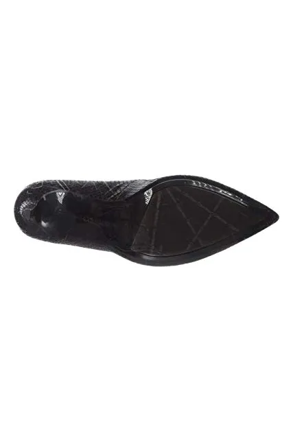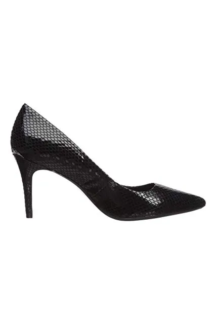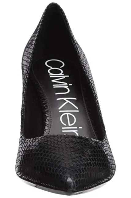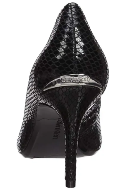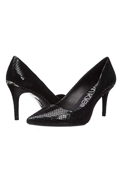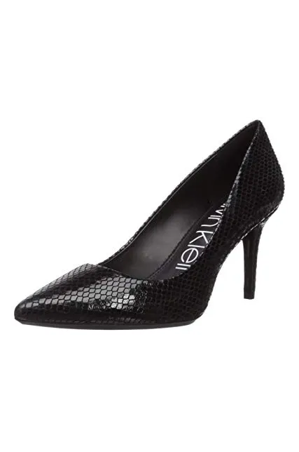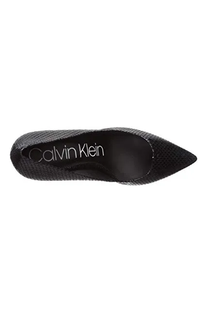 - STYLE AND DESIGN: Classic pointed toe pump with a 3 inch stiletto heel. Finished with a Calvin Klein logo plate at back heel.