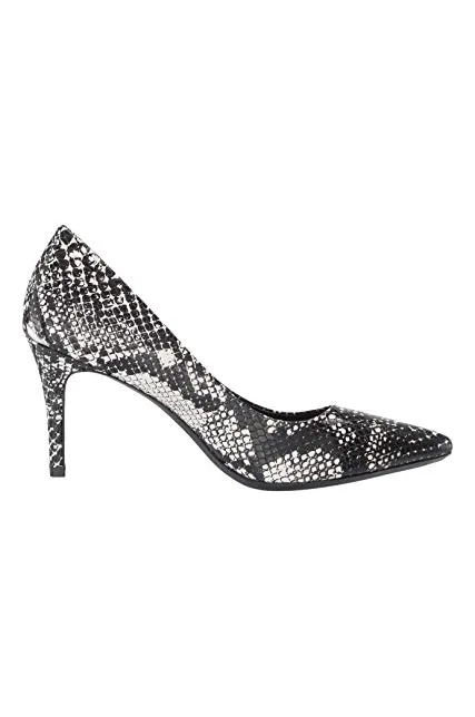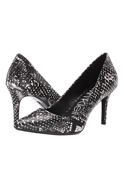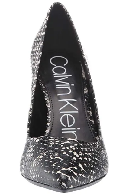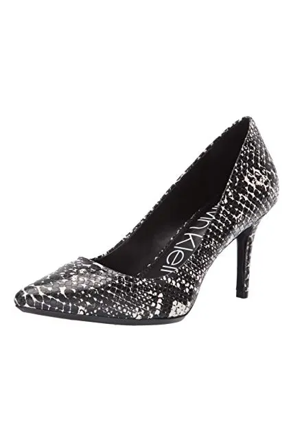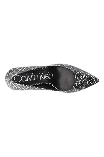 - STYLE AND DESIGN: Classic pointed toe pump with a 3 inch stiletto heel. Finished with a Calvin Klein logo plate at back heel.