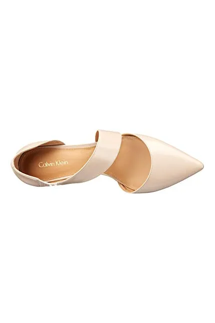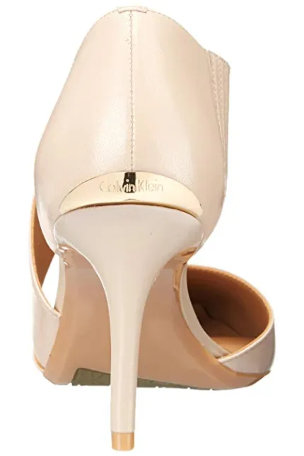 - STYLE AND DESIGN: Classic pointed toe pump with a 3 inch stiletto heel. Asymmetrical strap for optimal support and an extra touch of style. Finished with a Calvin Klein logo plate at back heel.